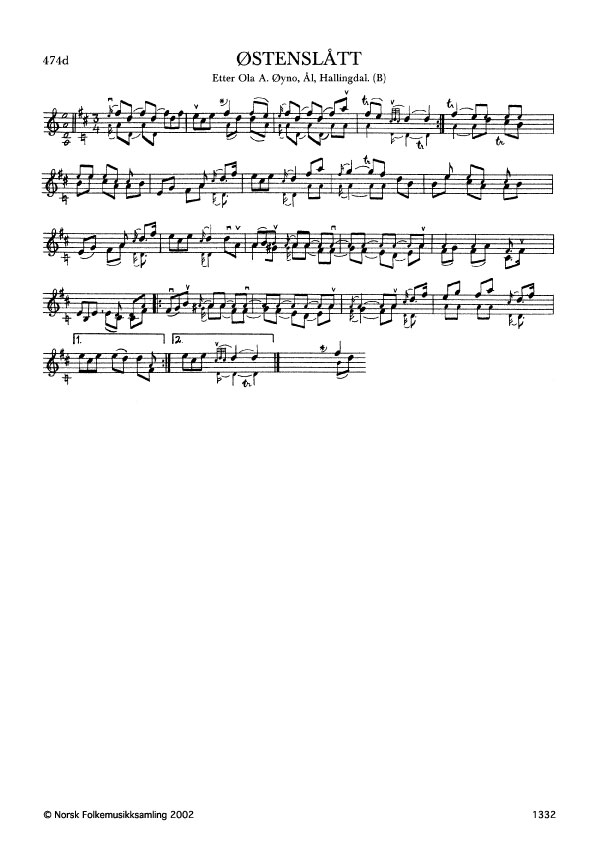 Østenslått. Etter Ola A. Øyno, Ål, Hallingdal. B. 1539, 1934. Øyno lærde slåtten av Ola A. Strand, ÅI.