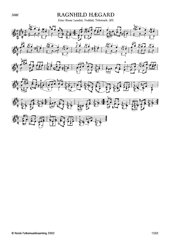 Ragnhild Hægard. Etter Einar Løndal, Tuddal, Telemark. Ø. 406, 1950. Slåttenamnet etter ei jente frå Hægard i Tinn. Ho var flink til å danse, og ville helst ha denne slåtten når ho skulle svinge seg. (Ørpen). Ei anna soge fortel at ho tulla denne når ho låg i barselseng.