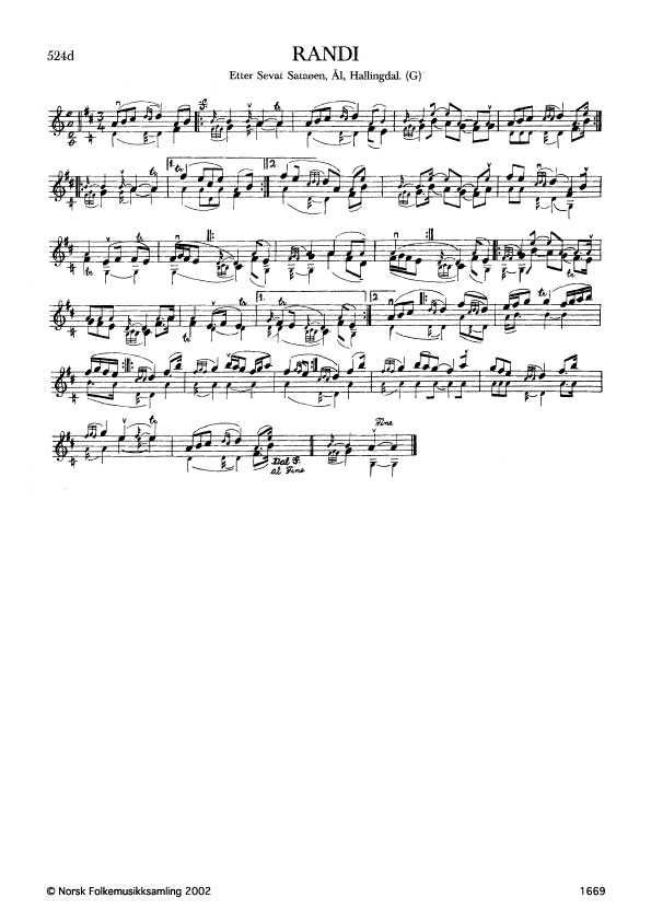 Randi. Etter Sevat Sataøen, Ål, Hallingdal. G. 1420, 1963. NRK magn. 1875. Namnet er etter Randi Breie Ørjansen frå Ål. (Magne Myhren).