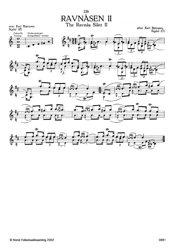 (Ravnåsen II) Ø. 301. Oppskr. 1937. Slåttenamnet etter spelemannen Narve Ravnås, Sigdal.
