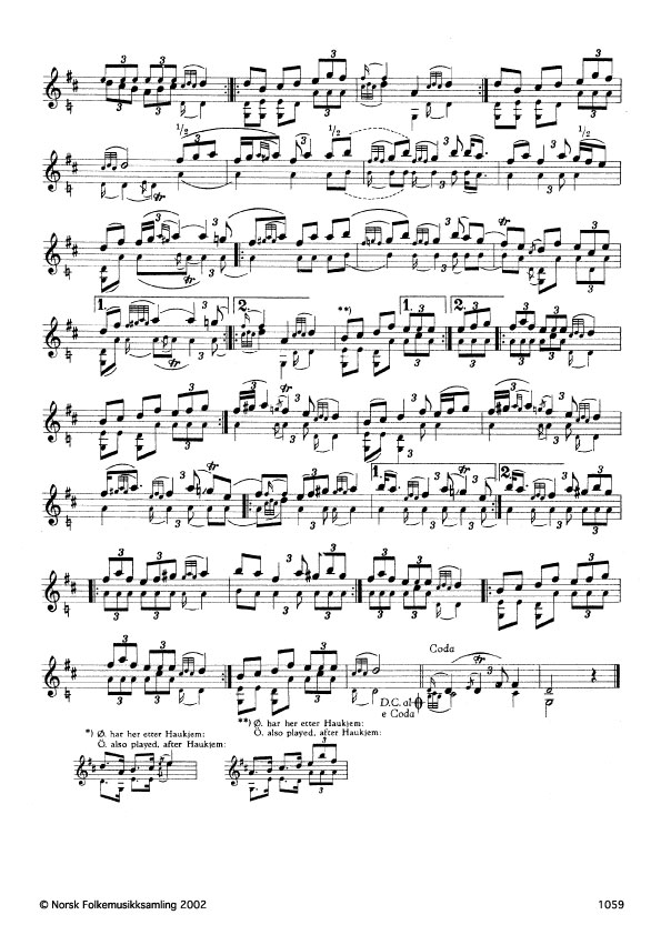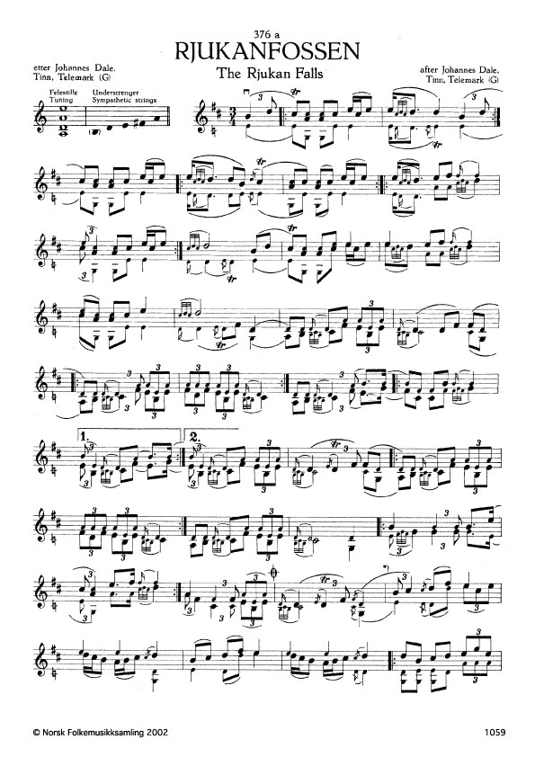 (Rjukanfossen) G. 1269. Oppskr. 1961 etter opptak i NRK. Dale hadde slåtten etter bestefaren, Knut Dale, Tinn, Telemark, som skal ha laga slåtten. Det vert fortalt at han bygde ut ein eldre slått, medan han mol korn attmed Rjukanfossen. (Etter Truls Ørpen.) Etter Bjørndal lærde Knut Dale slåtten av Myllarguten i 1860 på Åmyri, Rauland, Telemark. (Merknad B. 130.) Jfr. Ø. 150, Nordbø 139.