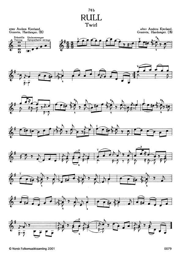 (Rull (10)) B. 2455. Oppskr. 1950. Kjerland hadde lært slåtten av Jakob Svartveit, Utne, Kinsarvik, Hardanger. Det er ein Håstadbøslått.