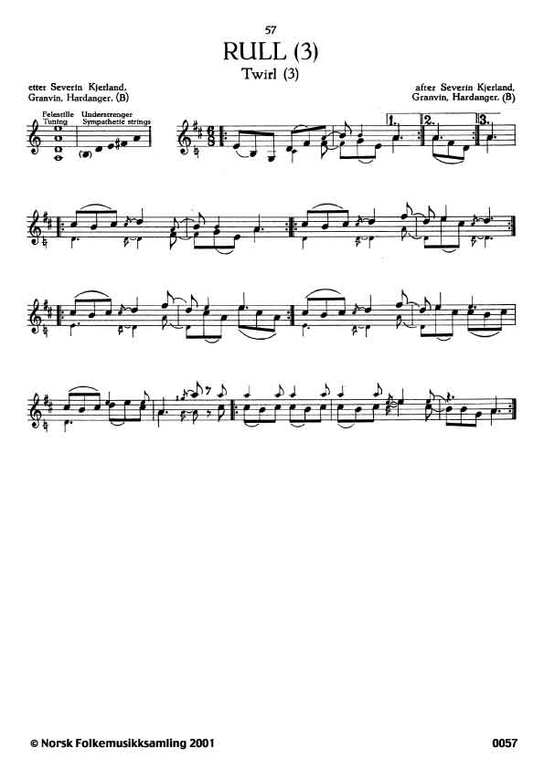 (Rull (3)) B. 2606. Oppskr. 1954. Kjerland hadde slåtten frå Lars Røynstrond, (Halte-Lars), Granvin. Slåtten er og kalla "Mosafinn-rullen"