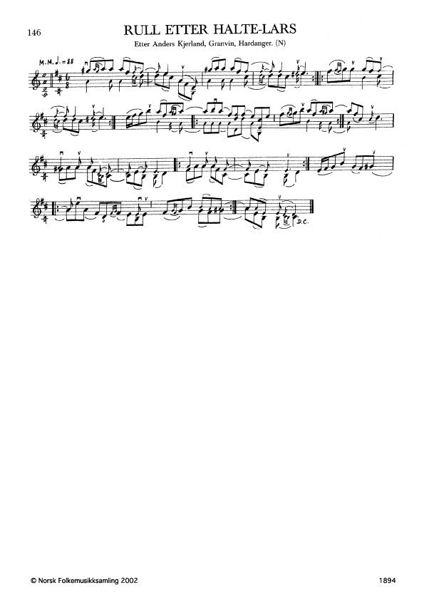 Rull etter Halte-Lars. Etter Anders Kjerland, Granvin, Hardanger. N. 1978. Td. 1382. Kjerland lærte slåtten av far sin, Severin Kjerland.
