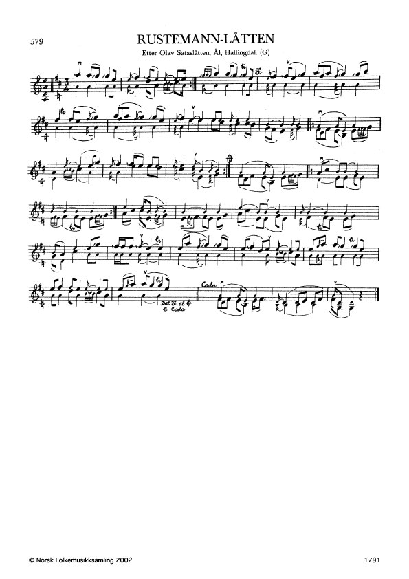 Rustemann-låtten. Etter Olav Sataslåtten, Ål, Hallingdal. G. 1915, 1972. NRK magn. 51285. Rustemann var ein tusse som budde i rustane. Rust = åpen plass i skogen. Ørpen skreiv opp ei anna utforming etter Sataslåtten, sjå band 5 nr. 324.