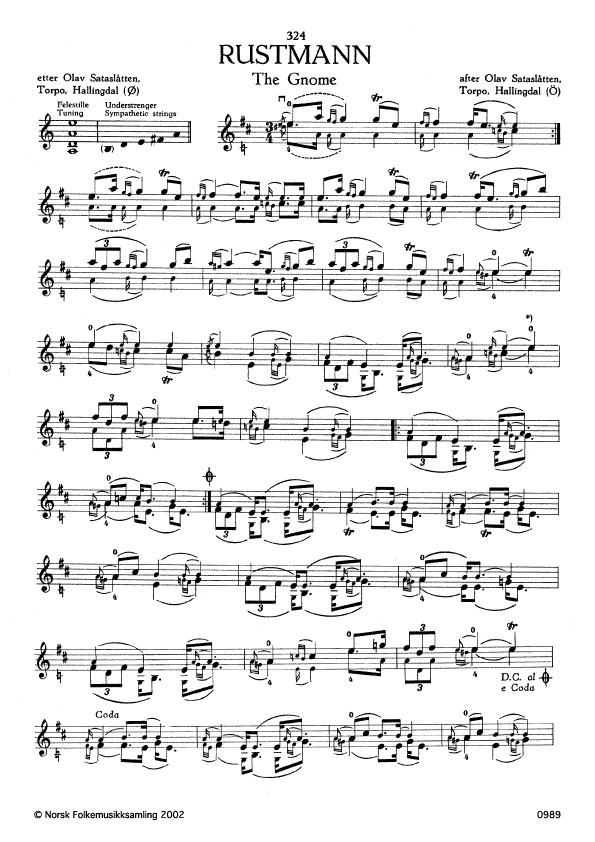 (Rustmann) Ø. 504. Oppskr. 1956. To karar låg langt inne på skogen og hogg timber. Då den eine skulle ut og hogga kveldsved, høyrde han så fin ein slått borti rusten. Det var rustmannen som let. Timberhoggaren hugsa slåtten og kalla han Rustmann. (Etter Ørpen som hadde det fra Sataslåtten.) Ordet rust har fleire tydingar. I Hallingdal gjerne ein krull lauvtre.