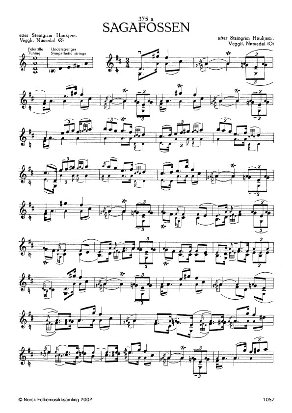(Sagafossen) Ø. 120. Oppskr. 1921. Slåttenamnet etter spelmannen Halvor Sagafossen, Heddal, Telemark. Jfr. Ø. 214, G. 1338 og 1366.