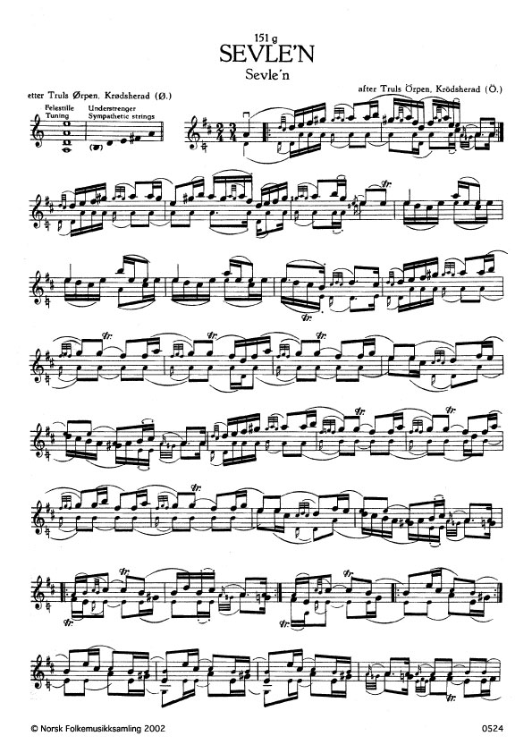 (Sevle'n) Ø. 441. Oppskr. 1955. Sjå B.N.SI. I, 1. Som smågut høyrde Truls Ørpen at dei i Krødsherad song: "Sevle-guten han vågar se sjøl". Ørpen hadde slåtten frå fleire spelmenn i Numedal og andre stader.