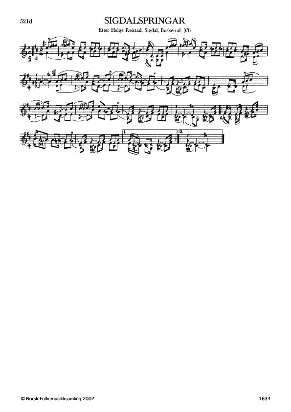 Sigdalspringar. Etter Helge Reistad, Sigdal, Buskerud. Ø. 162, 1930. Reistad hadde slåtten etter gamle Sigdalsspelemenn.
