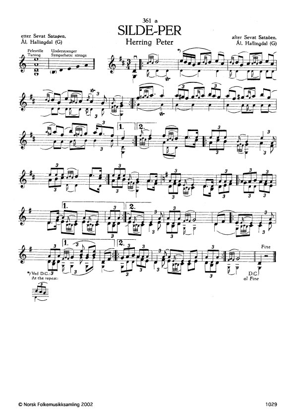 (Silde-Per) G. 1423. Oppskr. 1961 etter opptak i NRK. Sataøen hadde slåtten etter Tor Grimsgard, Nes, Hallingdal. Jfr. G. 1188. Silde-Per osv. sjå 361b.