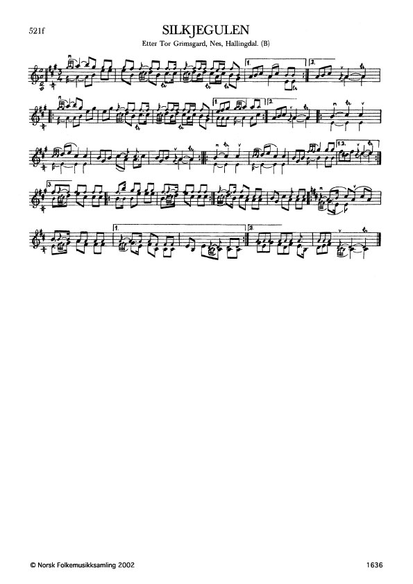 Silkjegulen. Etter Tor Grimsgard, Nes, Hallingdal. B. N. Sl. 47, oppskrift frå 1919.