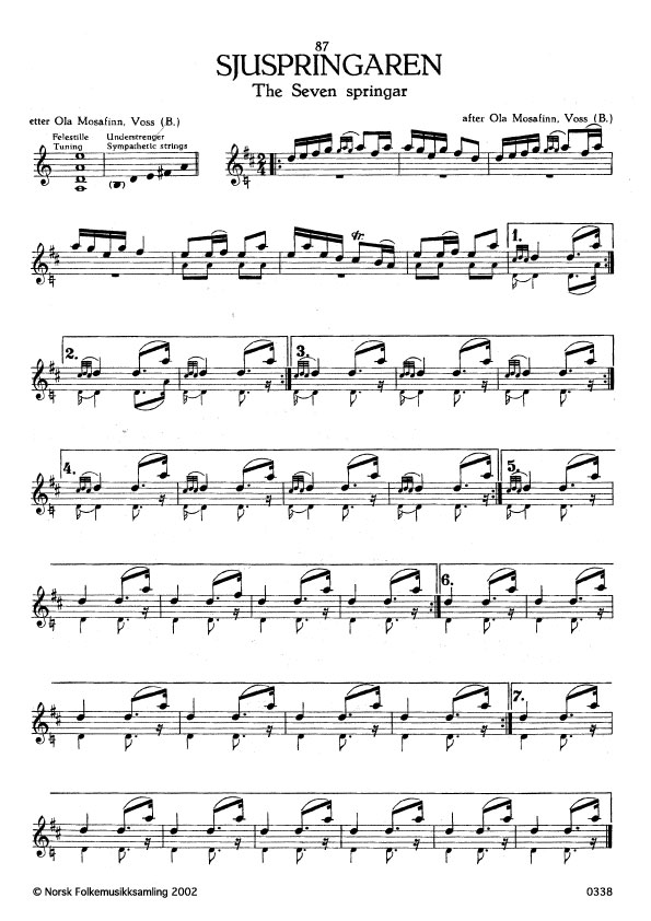 (Sjuspringaren) B. 1537. Oppskr. 1908. Denne dansen var ein grotesk skodedans (underholdningsdans). I Nordfjord kalla dei han sjumannshalling. Det var ein mannfolkdans.