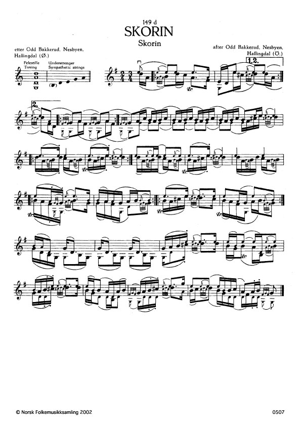 (Skorin) Ø. 352. Oppskr. 1953. Bakkerud hadde lært slåtten av Kristian Øvrevollseie, Hol, og denne av Herleik Kvanberg. Kvanberg var yngste son og fIytte til fjellgarden Trettesløten som låg under de i høge Kvanberga. Herleik tok namn etter desse fjella. Han hadde lært av Knut Skaro (Skaren) som vart kalla Asle-Knut. Sume stader heiter og slåtten Asle-Knut.