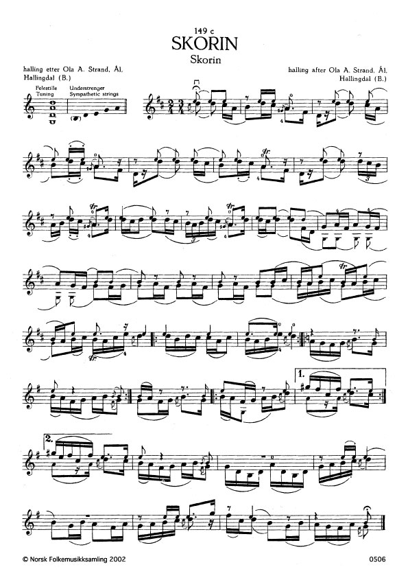 (Skorin) B. 1285. Oppskr. 1938. Slåttenamnet etter spelmannen Knut Skorin (eller Skora), Hol, Hallingdal. Strand fekk slåtten frå han i 1890-åra.