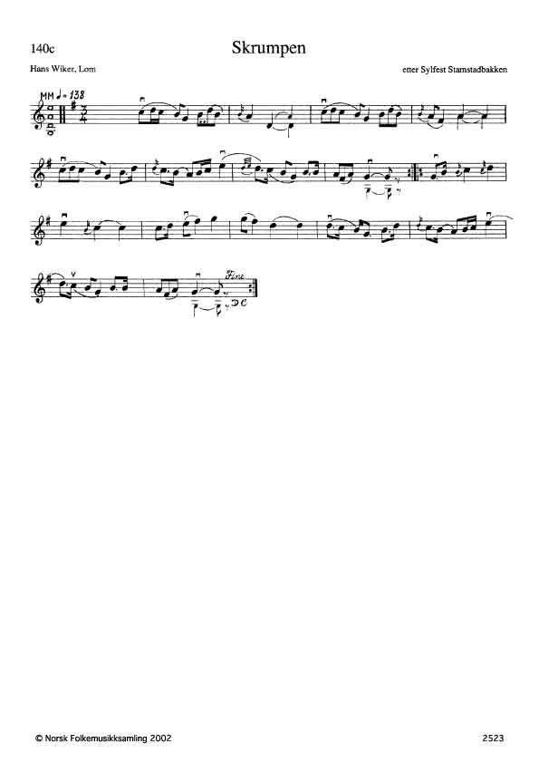| Verk | Slåtter for vanlig fele |