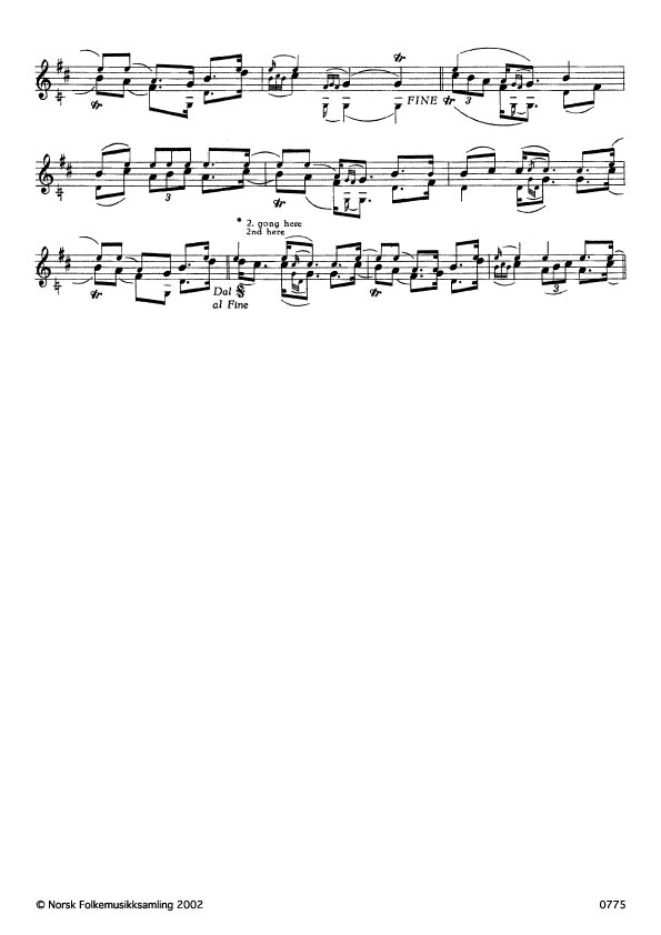 (Skutlingen) Ø. 306. Oppskr. 1922 etter grammofoninnspeling (pathefon). Slåttenamnet er etter spelemannen Hans Skutle, som var frå Selland, Granvin, Hardanger, vart gift til Skutle, Voss, og flytte dit.