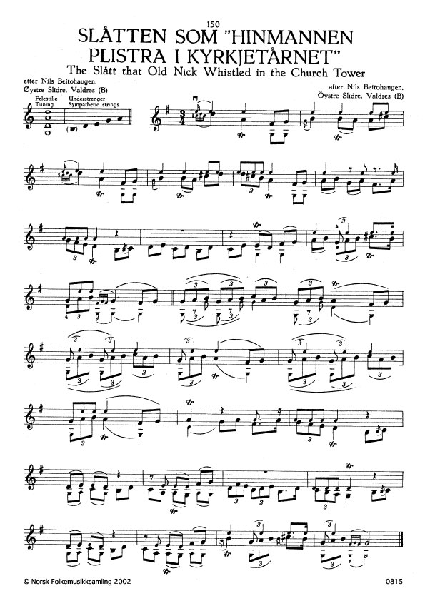 (Slåtten som "Hinmannen blistra i kyrkjetårnet") B. 461. Oppskr. 1912. Beitohaugen hadde lært slåtten av Torgeir Hegge, Øystre Slidre, Valdres, i 1875. Sjå Hortense Panum, "Langeleken", der segna står.
