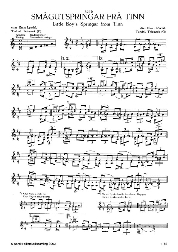 (Smågutspringar frå Tinn) Ø. 372. Oppskr. 1951 etter opptak i NRK. Løndal hadde truleg slåtten etter far sin, Svein Løndal, Tuddal, Telemark. Jfr. B. 814 og H. 856.