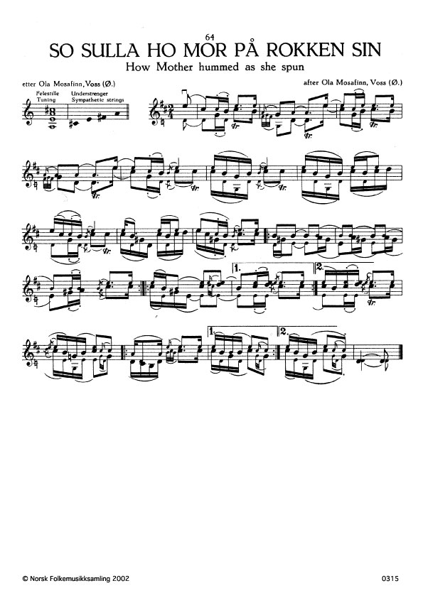 (So sulla ho mor på rokken sin) Ø. 188. Oppskr. 1912. Slåtten har ingen ting å gjera med den andre slåtten med same namnet, nr. 122 b.