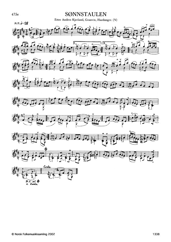 Sønnstaulen. Etter Anders Kjerland, Granvin, Hardanger. N. 1975. Td. 1489. Kjerland lærde slåtten av Halldor Meland, Hardanger, som hadde utforma han nokolunde slik.