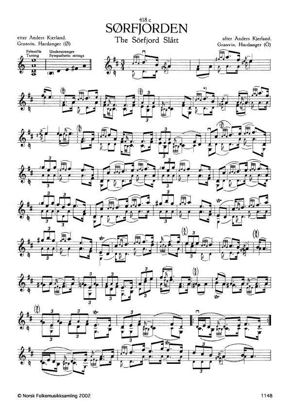 (Sørfjorden) Ø. 341. Oppskr. 1953 etter opptak i NRK. Kjerland har slåtten etter Halldor Meland, Kvam, Hardanger. Ola Bulko skal ha laga slåtten. Sørfjorden er inste grein av Hardangerfjorden.