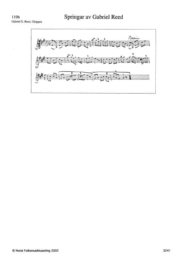 Jf Myklebust 1986/2 nr 1, springar, Jakob Myklebust etter Gabriel Reed (år 1942), samsvarer med a, også i starten av 2.vek. Glipp i Bjørndals opptegnelse?