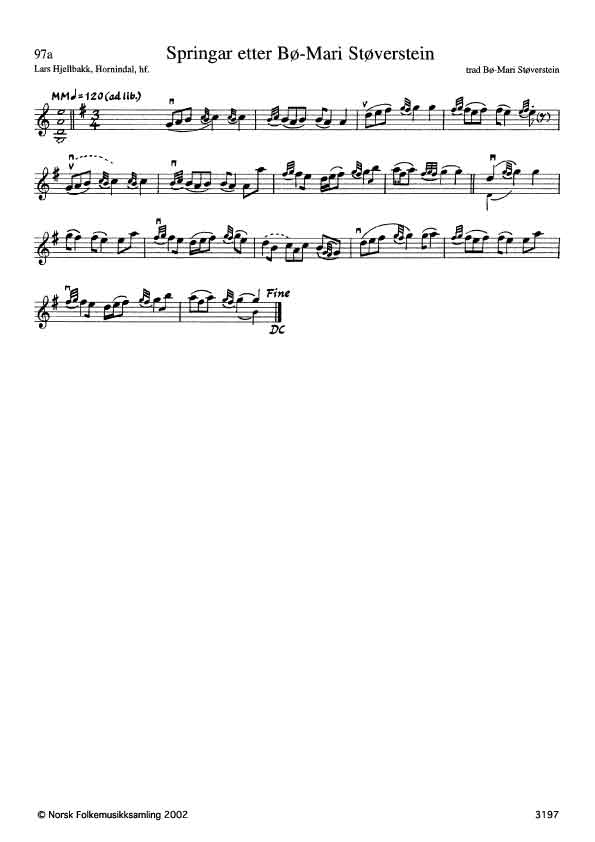 Trad Bø-Mari Støverstein (1797-1885) som var felespiller og faster til M. Maurset. Usikkert spill.