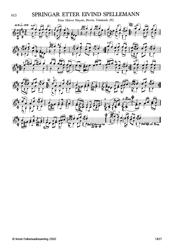 Springar etter Eivind Spellemann. Etter Halvor Høyseth, Hovin, Telemark. N. 1978. Td. 1358.