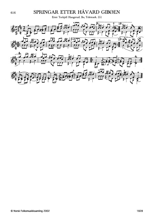 Springar etter Håvard Gibøen. Etter Torkjell Haugerud, Bø, Telemark. G. 1006, 1960.