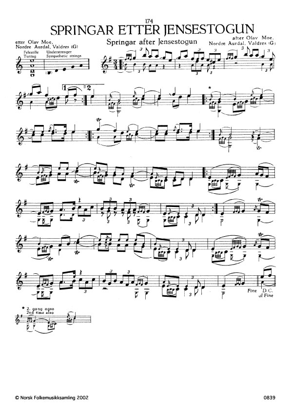 (Springar etter Jensestogun) G. 1394. Oppskriven etter opptak i NRK 1961.