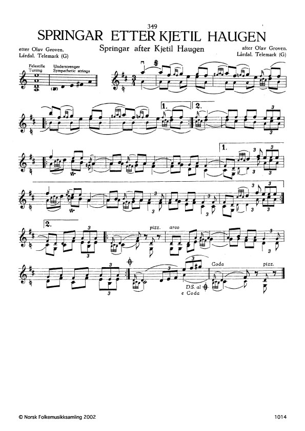 (Springar etter Kjetil Haugen) G. 1219. Oppskr. 1961 etter minne. Olav Groven hadde slåtten etter Kjetil Haugen, Vinje, Telemark.