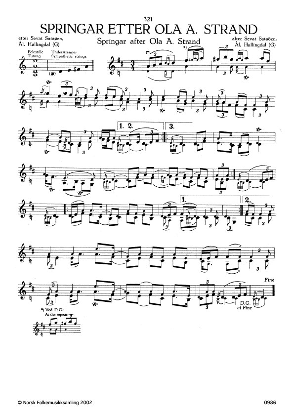 (Springar etter Ola A. Strand) G. 1405. Oppskr. 1961 etter opptak i NRK. Ola A. Strand var frå Ål, Hallingdal.