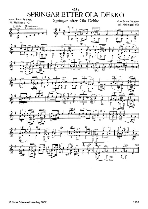 (Springar etter Ola Dekko) G. 1421. Oppskr. 1961 etter opptak i NRK. Ola Dekko var ein spelmann frå Torpo, Ål, Hallingdal.