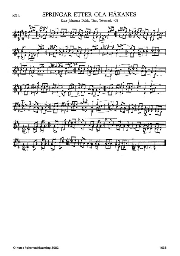 Springar etter Ola Håkanes. Etter Johannes Dahle, Tinn, Telemark. G. 1322, 1961. NRK magn. 2073. Jfr. G. 1321. Andre variantar: Ø. 367. Slåttenamnet etter spelemannen Olav Håkanes, Tinn, Telemark (1822-1908).