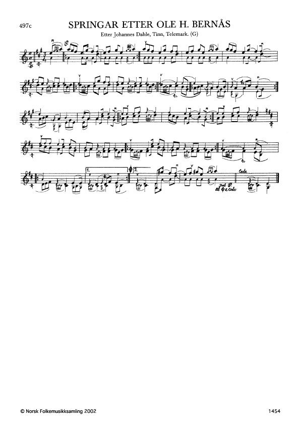 Springar etter Ole H. Bernås. Etter Johannes Dahle, Tinn, Telemark. G. 1319, 1961. NRK magn. 2073. Ole H. Bernås var ein spelemann frå Tinn.