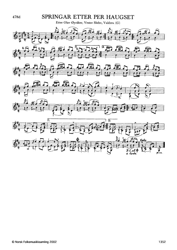 Springar etter Per Haugset. Etter Olav Øyråker, Vestre Slidre, Valdres. G. 1124, 1959.