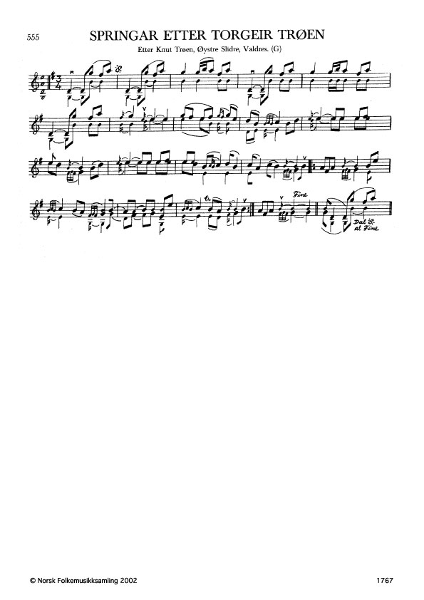 Springar etter Torgeir Tröen. Etter Knut Tröen, Øystre Slidre, Valdres. G. 1754, 1966. NRK magn. 53998. Torgeir var far til Knut.
