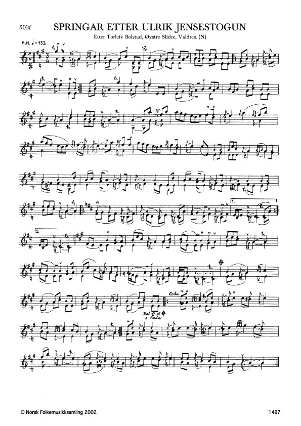 Springar etter Ulrik Jensestogun. Etter Torleiv Bolstad, Øystre Slidre, Valdres. N. 1974. Td. 1463.