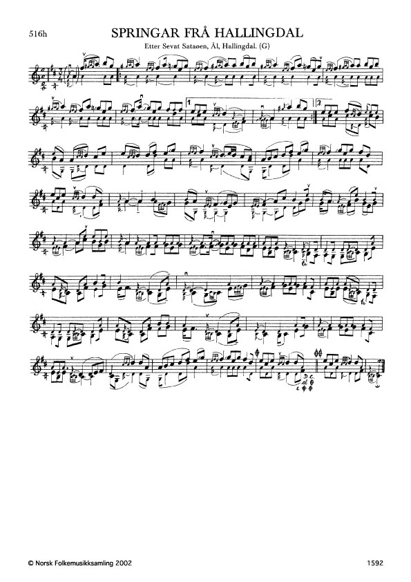 Springar frå Hallingdal. Etter Sevat Sataøen, Ål, Hallingdal. G. 1402, 1962. NRK magn. 1874. Andre variantar: G. 766 etter A. Roheim, jfr. Ø. 262 og 442; G. 1328 og 1332 etter Johs. Dahle; G. 1402 etter S. Sataøen.