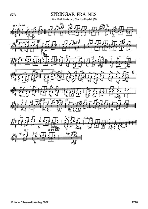Springar frå Nes. Etter Odd Bakkerud, Nes, Hallingdal. N. 1978. Td. 1857. Bakkerud har slåtten frå Knut Bakkerud.