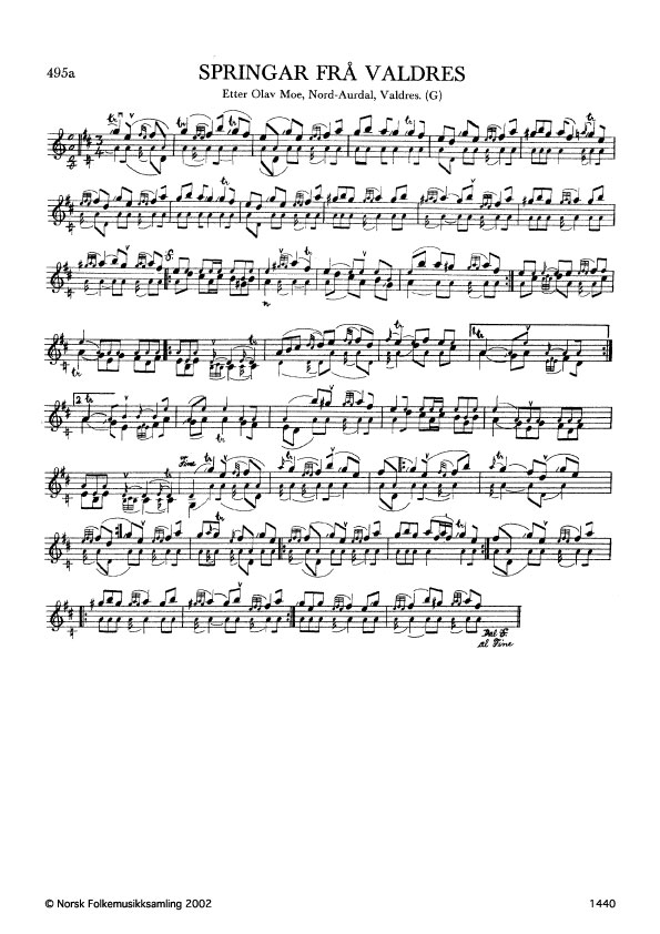 Springar frå Valdres. Etter Olav Moe, Nord-Aurdal, Valdres. G. 1390, 1961. NRK magn. 53275.