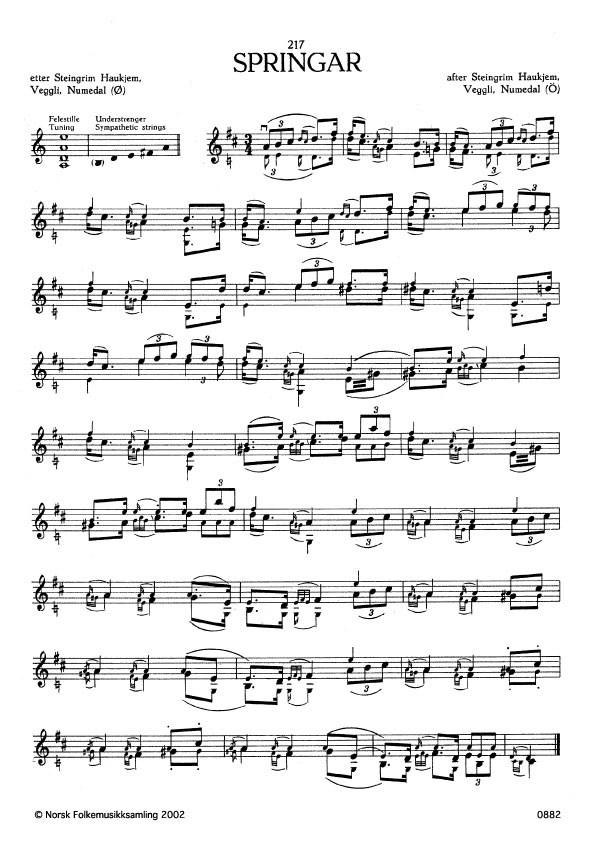 (Springar) Ø. 101. Oppskr. 1921. Haukjem hadde slåtten etter tinndøl-spelemenner. Siste taket er sams med siste tak i Fjellbekken etter Knut Dahle.