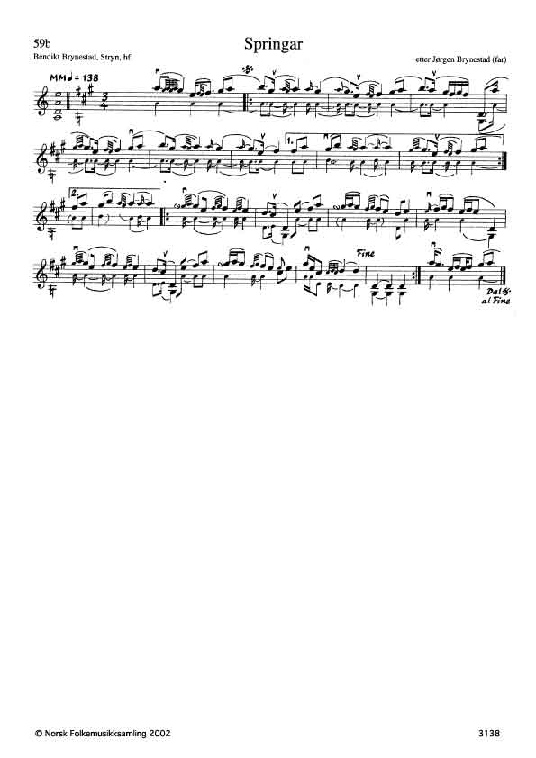 En del melodifigurer er forskjellige fra a, og Brynestad har ei ekstra (noe ukurant) utfyllende takt i 2.vek. Men stilmessig er slektskapet nært. Bruland og J. Brynestad (1863-1936) hadde begge Andreas Sunde som viktigste slåttekilde (se a). Alle disse spilte fele, men Brynestads sønn Bendikt byttet til hardingfele som 20-åring i 1928.