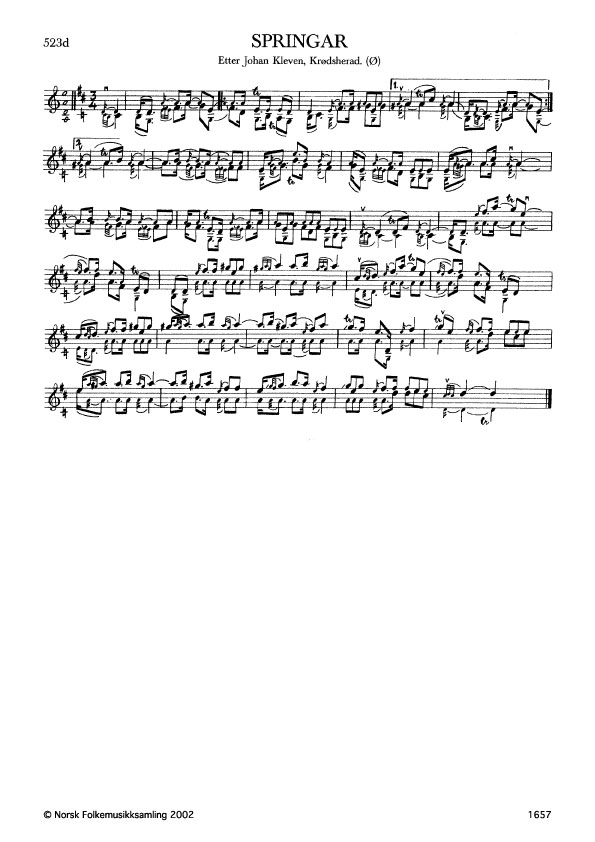 Springar. Etter Johan Kleven, Krødsherad. Ø. 54, 1926. Kleven hadde slåtten etter far sin, Ola Helgesen Kleiva.