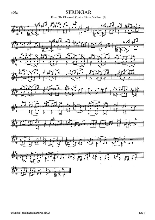 Springar. Etter Ola Okshovd, Øystre Slidre, Valdres. B. 1039, 1911. Jørn Hilme spela og denne slåtten.