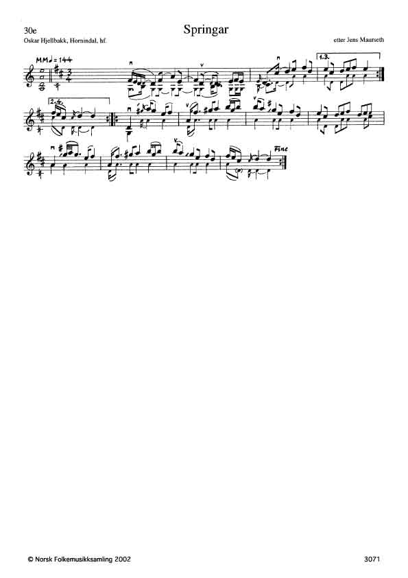 Starten utformes som i c. ‘Yngre’ innspillinger fra Hornindal (e-f) har mer delte strøkfigurer enn hos Maurseth (a).