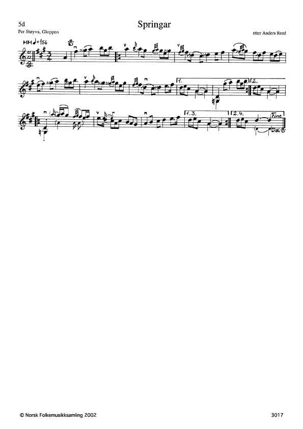 Melodigangen er i tråd med a-b, men med Støyvas enstemte melodilinje og korte strøk.