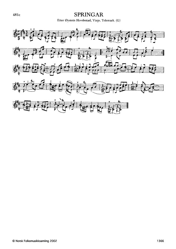 Springar. Etter Øystein Hovdestad, Vinje, Telemark. G. 736, 1919.