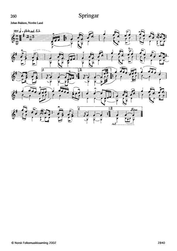 Lært som barn av en felespiller som kaltes Spangerud'n. Spilt på vanlig fele, men med tjukke dobbeltstrøk hele veien. "Spangerud var gammal da jeg lærte'n å kjenne. Han bodde på Bjørnerud mellom Fluberg og Hov, var altmuligmann og laga også feler".