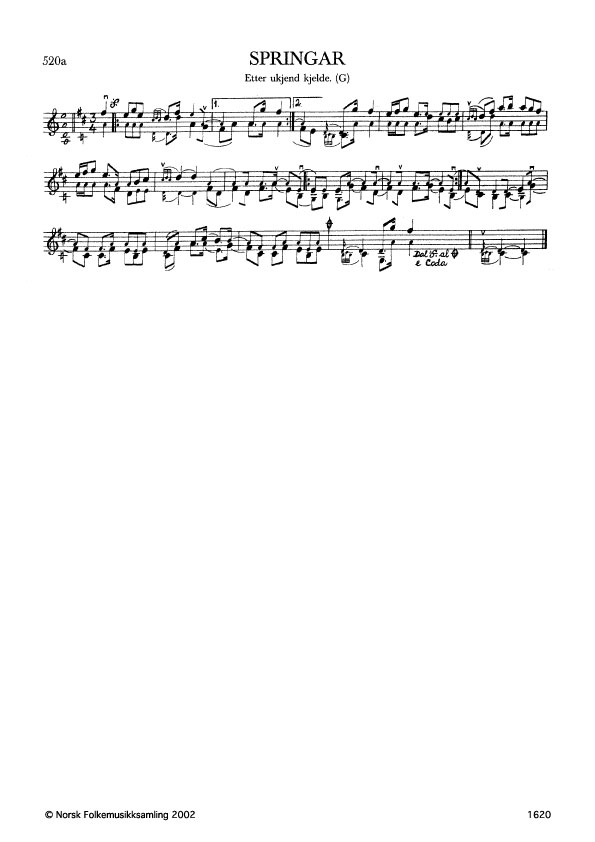 Springar. Etter Eivind Groven. G. 429, 1944. Groven hugsa ikkje kjelda for denne slåtten.